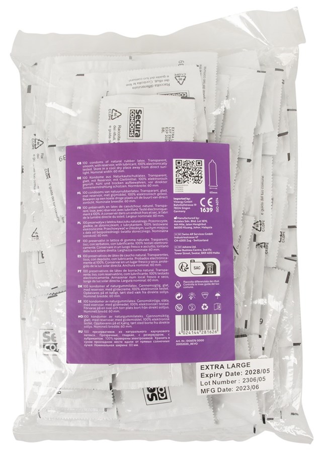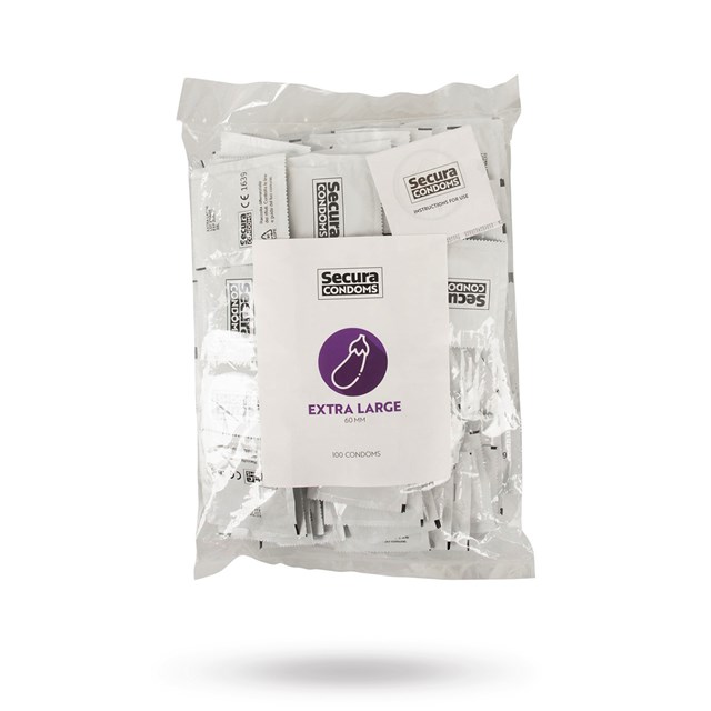 Transparent, silky smooth condoms Extra Large from Secura Condoms with more size and comfort for the larger penis. With silicone-based coating and reservoir. Odourless and tasteless.